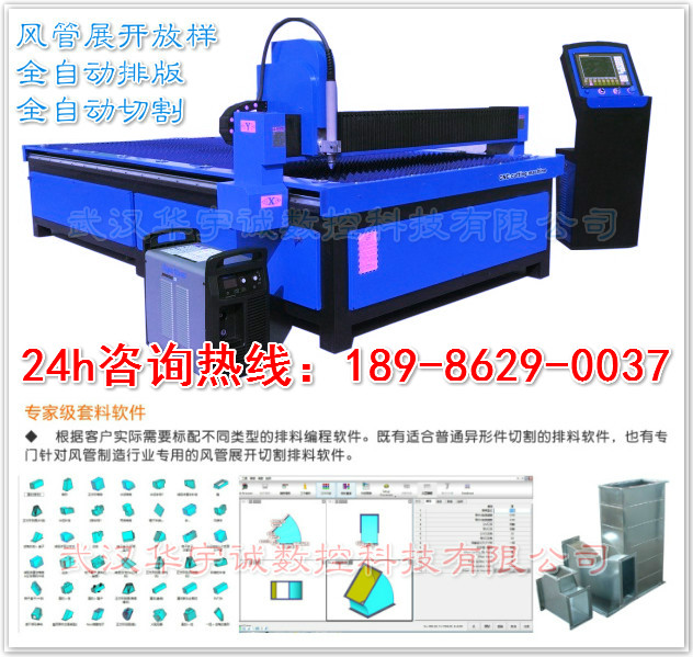 武漢華宇誠數(shù)控科技有限公司經(jīng)過反復(fù)試驗,成功研制出了通風(fēng)管道專用數(shù)控等離子切割機,配合專用的風(fēng)管切割軟件,自動生成圖紙、導(dǎo)出加工程序。更加適應(yīng)風(fēng)管展開切割需求,功能更適應(yīng)風(fēng)管展開切割、操作更加便捷、成本進一步降低,讓利于客戶。操作人員所需要做的就是在軟件中選擇所需要的風(fēng)管樣式,輸入所需要的尺寸,然后調(diào)出加工程序進行切割就可以了。既方便快捷、又精確實用。